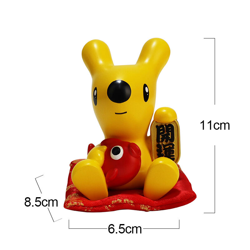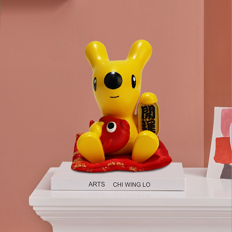 A Gyanta Szerencsés Sárga Nyúl Dísz egy elbájoló díszítőelem. Egy aranyos sárga nyúlból kialakítva, amely egy „Kaiyun” amulettet tart, ez a szerencse szimbólumát képviseli, így ideális díszítés otthonokba, üzletek pultjaira szerencse vonzásához, vagy ajándékként. Magas minőségű gyantából készült, sima felületének és élénk színeinek köszönhetően hosszú távon is megőrzi varázsát. Ajándéktárgyboltok, otthondekorációs üzletek vagy ázsiai témájú termékekkel foglalkozó nagykereskedők számára kiváló kiegészítője lehet a B2B katalógusoknak. Kielégíti a szerencsét hordozó gyanta díszek iránti igényt, pozitív hangulatot adva bármely térnek.